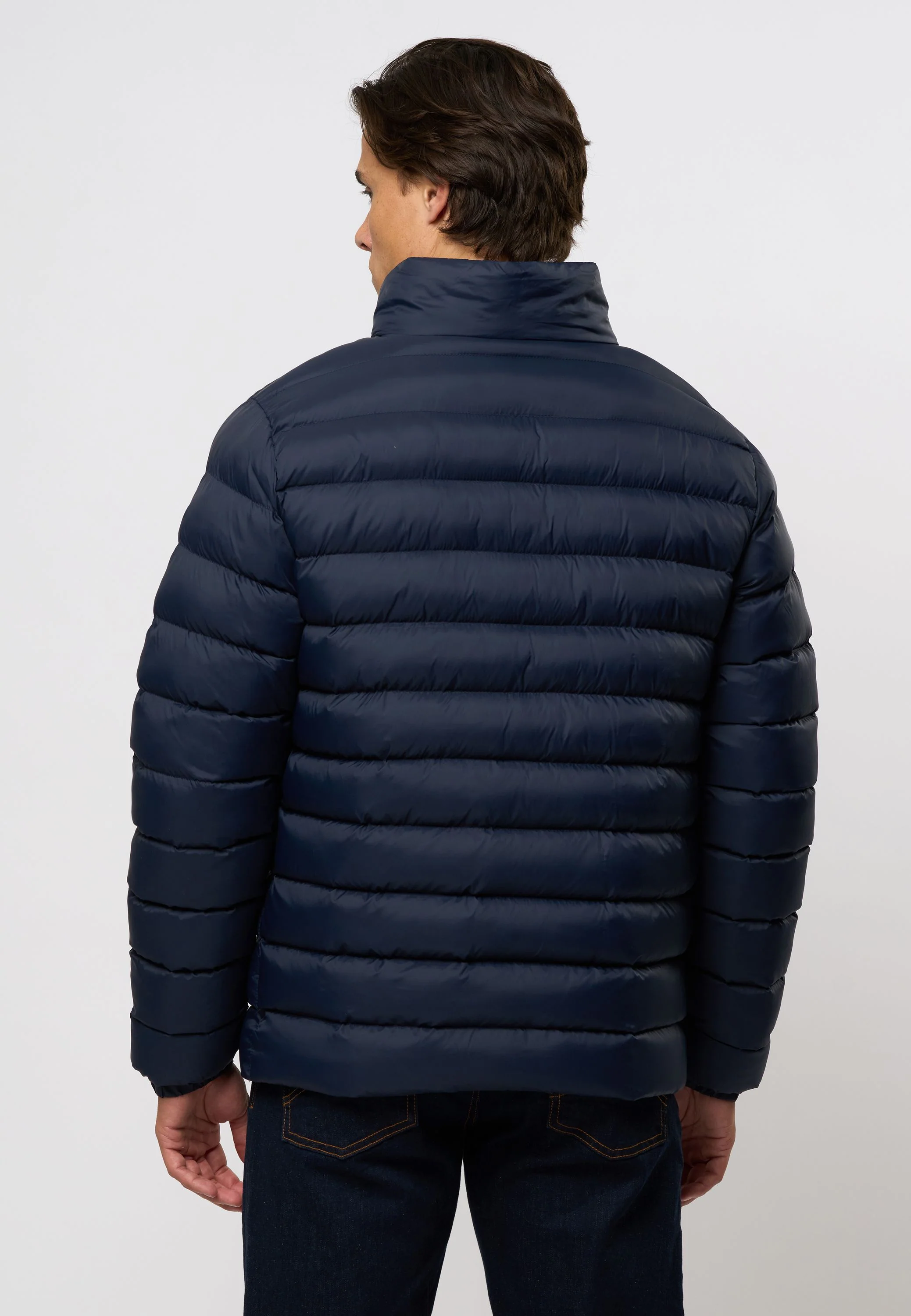 Anton er en let og varm jakke med fyldig vattering og klassisk look. Den høje krave og lynlåslukning giver god beskyttelse mod vind og vejr, mens de skjulte sidelommer holder hænderne varme. Indvendigt er jakken udstyret med en praktisk lomme og foret med logo-print. Et broderet logo på brystet afrunder det enkle design – ideel til både overgangsperioder og kolde dage